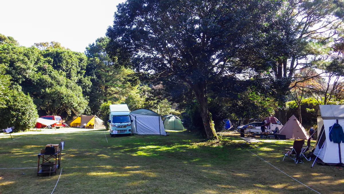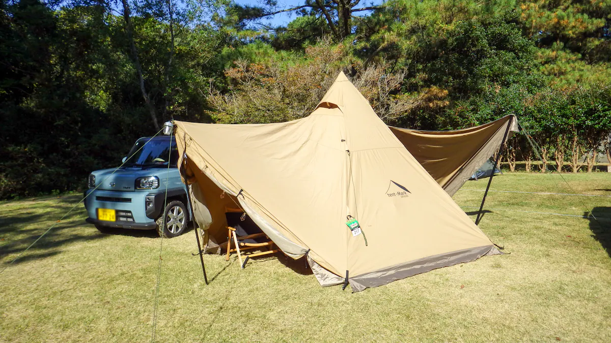 到着後、まずはテントを立てる。